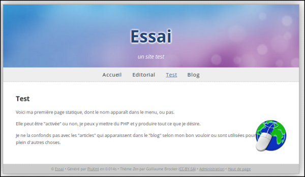 Nous modulerons cette ou ces sidebars comme nous l'entendons parce qu'avec Pluxml, nous pouvons avoir un menu (et des couleurs) différent pour chaque page à n'importe quel niveau du site.