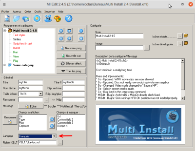Il apparaîtra dans la partie inférieure gauche de MI (Skinable ou Classic)Champs à afficher : champs à montrer dans les applications clientes de Multi Install.Champs à masquer : champs à masquer dans les applications clientes de Multi Install.Langage : langue utilisée avec MI Skinable/MI Classic.