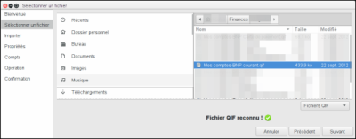 Ici vous sélectionnez un seul fichier à importer. HomeBank positionne le filtre au format choisi dans le menu.